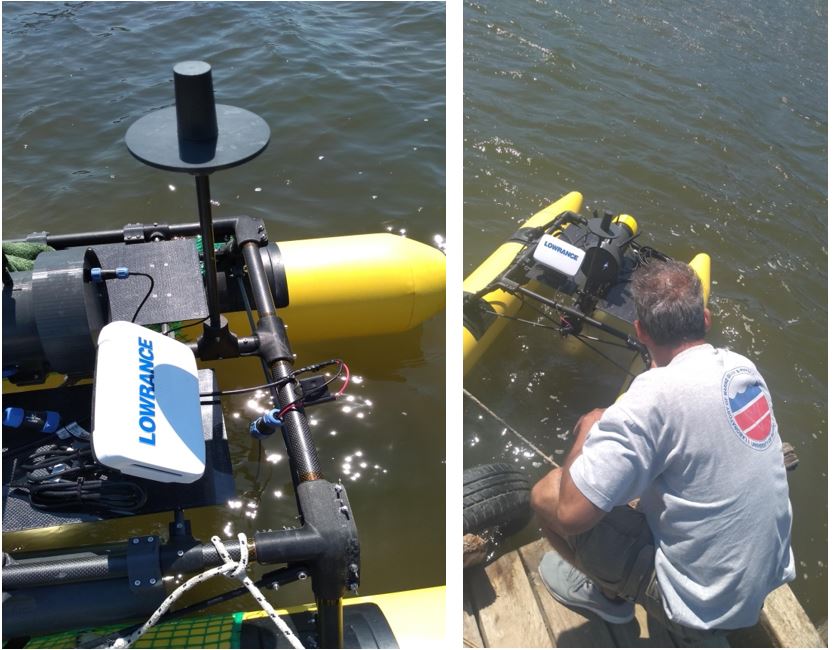 The reconnaissance survey revealed the geophysical and morphological characteristics as well as the submerged vegetation mapping of the lagoon, using a high resolution side scan sonar on board of an Unmanned Surface Vehicle (USV). The unique characteristic of this effort was that, it was the first successful attempt to collect data from extremely shallow and turbulent waters, using a USV. The detailed bathymetry acquired from the single beam echosounder, showed that the lagoon consists of an extremely shallow water body, with a maximum water depth of 0.70 m. The backscatter data underwent both unsupervised and manual classification. These procedures revealed that the bottom of the lagoon consists of submerged aquatic vegetation, two running ridges of E-W and N-S direction, drainage embankments and two very shallow “basins”.