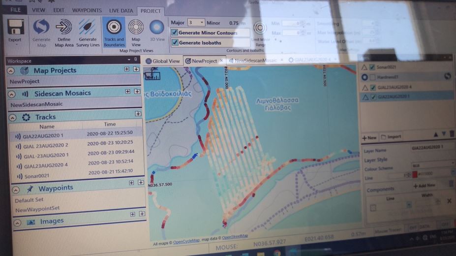 A multidisciplinary methodological approach was followed in Gialova lagoon, SW Peloponnesus (Greece), on the basis of two sampling campaigns conducted on August and December 2020, during which geophysical and sedimentological data were collected, respectively. The project has been funded by the Oceanus-Lab in collaboration with Intelligent Machines Single Member P.C. The main objectives were to identify the morphology and characteristics of the lagoon floor, to visualize the spatial distribution of its sedimentological characteristics, to examine possible correlations amongst acoustic characteristics of the lagoon’s floor and granulometry, to calculate the elemental concentration of surface sediments and finally to examine potential heavy metal enrichment, using validated techniques.